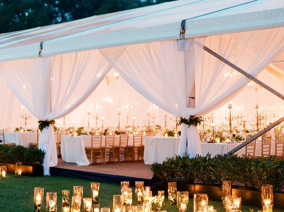 This exceptional property on 2.5 acres is complete with a drive up fully equipped catering kitchen with easy access to the main hall or the erected cathedral tent where there is room for 150 guests.